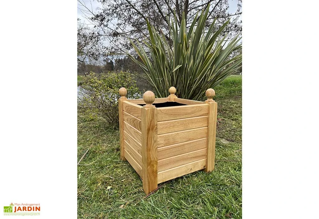 Son design élégant vous rappellera sans doute les caisses à oranger des jardin de Versailles. La jardinière en bois dispose d’une structure composée de lattes de 2,5 cm d’épaisseur assurant une excellente solidité dans le temps, et elle repose sur des pieds de 7 cm d’épaisseur. Le fond du bac à fleurs est percé pour permettre un drainage parfait de la terre avec une évacuation naturelle de l’eau de pluie.