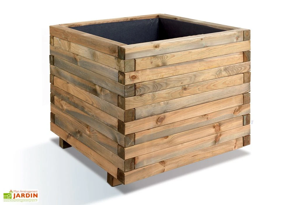 Ce pot de fleurs possède une contenance de 532 litres. Le bois dispose d’une épaisseur de 7 cm pour les parois et de 2,5 cm d’épaisseur pour le fond. Il repose sur 2 lambourdes de 80 x 4 cm (longueur, épaisseur) et 4 cm de hauteur. Cette jardinière possède 11 lames de 7 x 7 cm (largeur, hauteur) par face. Elle est livré déjà montée grâce à un système de clouage invisible qui la rend robuste et étanche. Un géotextile de protection est fourni.