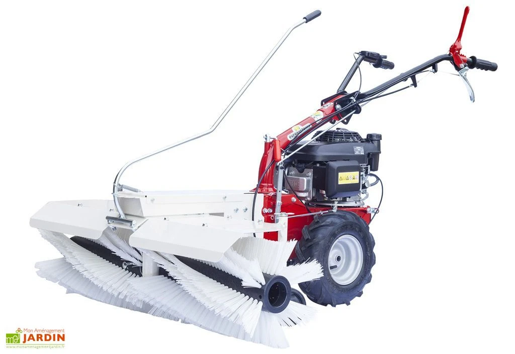 La balayeuse est un accessoire à installer sur le Porte Outils Thermique Multifonctions 190 CC – P55 de chez Eurosystems. Le balai mesure 105 cm de largeur et 31 cm de diamètre. Il est réglable en hauteur et orientable en 5 positions. Le balai frontal peut être commandé en même temps que le porte outils, dans ce cas les frais de port sont offerts. Si vous disposez déjà du porte outils, vous pouvez choisir une livraison seule. Dans ce cas il est nécessaire de choisir l’option « Livrée seule » dans le menu déroulant.