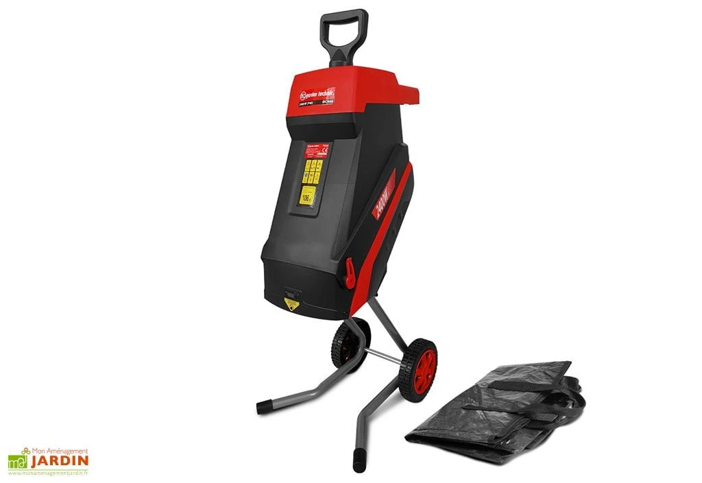 Ce broyeur de branches est livré accompagné d’un sac récolteur d’une capacité de 45 L prévu pour recueillir les végétaux coupés. Compact et plutôt léger (10,3 kg), il est de plus équipé de roues et d’une poignée pensées pour faciliter son transport. Il n’occupera que peu de place et pourra être aisément rangé dans un petit abri de jardin ou dans un garage. Notez enfin la présence d’un bouton d’arrêt d’urgence, pour une utilisation en toute sécurité.