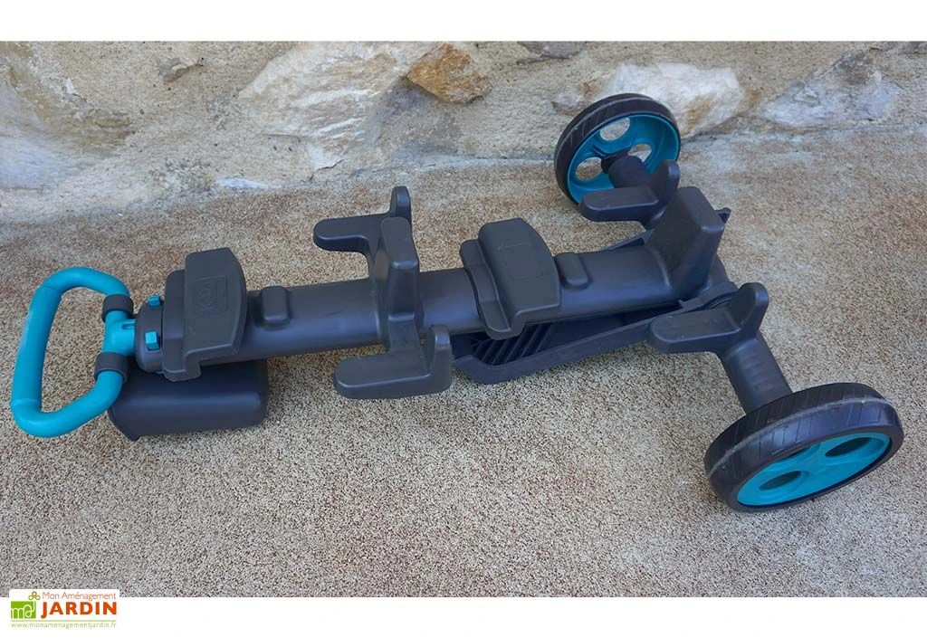 Ce caddie chariot est le fruit d’une fabrication française. Il est composé de polypropylène, d’ABS (pour les roues et le verrou) et d’EVA (pour les pneus). Ces matériaux sont tous des polymères thermoplastiques extrêmement résistants aux chocs comme aux UV.
