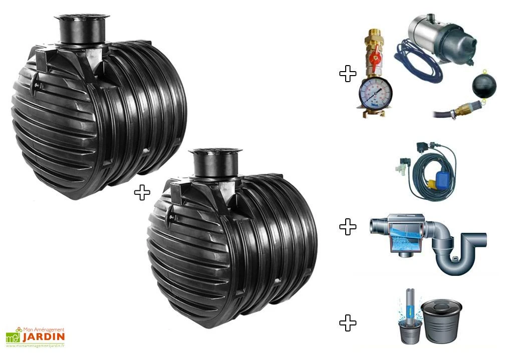 Votre cuve récupérateur eau Standard de 12000 L (2 cuves de 6000 litres) enterrée en polyéthylène simple peau de qualité supérieure de chez GreenLife vous garantira une grande sécurité et le sérieux des fabrications allemandes. L’installation GreenLife vous permettra la récupération de l’eau de pluie et son utilisation pour l’arrosage du jardin et pour l’alimentation de votre habitation en eau non potable. Si la cuve de récupération d’eau GreenLife arrive à épuisement, votre installation GreenLife bascule automatiquement sur votre réseau d’eau potable. Chaque cuve est fabriquée en une pièce sans soudure avec dôme coulissant et protection de sécurité en plastique, filtre immergé, stabilisateur d’alimentation, siphon d’évacuation de trop plein. Pompe refoulante immergée et filtre d’aspiration flottant et tuyau de refoulement de l’eau de pluie de 10 mètres, disjoncteur avec protection anti-marche à vide et support mural, commutateur à flotteur, réalimentation en eau potable avec écoulement libre suivant DIN 1988 et matériel d’identification. La Cuve récupérateur eau standard de 12000 L est livrée en kit à monter soit même. La cuve est garantie 15 ans, les autres accessoires sont garantis 2 ans. La cuve est livrée face au domicile du client. Pour le déchargement, l’aide du client peut être demandée (prévoir le matériel ou des personnes sur place).