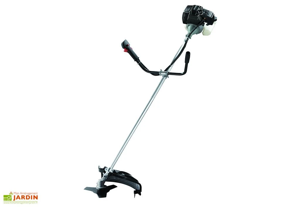 La débroussailleuse thermique possède une puissance de 1230 Watts et 43 CC. Elle fonctionne avec un moteur 2 temps. 2 en 1, cette débroussailleuse fonctionne avec un fil de 2,5 mm de diamètre ou avec une lame 3 dents. La largeur de coupe offerte par le fil est de 44 cm et la largeur de coupe de la lame est de 23 cm.