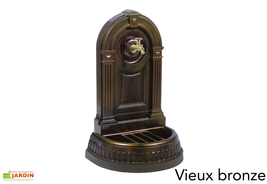 La fontaine en fonte est livrée avec son robinet colvert et un adaptateur permettant de raccorder un tuyau d’arrosage. La fonte est protégée par un traitement anticorrosion par thermolaquage, que vous pourrez choisir parmi 5 couleurs. Elle ne craint donc pas la rouille.