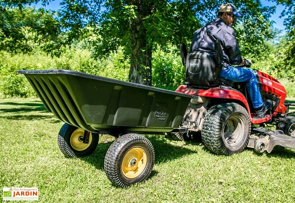 La remorque LG900 de chez Polar a été spécialement pensée pour supporter de lourdes charges. Elle vous promet une aide sans failles dans vos activités agricoles ou de travaux. Sa capacité de charge peut atteindre les 408 kg, ce qui en fait une alliée de taille pour transporter des pierres, du bois ou même l’ensemble de vos récoltes. Son haut degré de stabilité s’explique par la présence d’un cadre en acier renforcé. Celui-ci est situé sous la bassine en plastique et constitue un support solide permettant de maintenir la forme de la remorque.