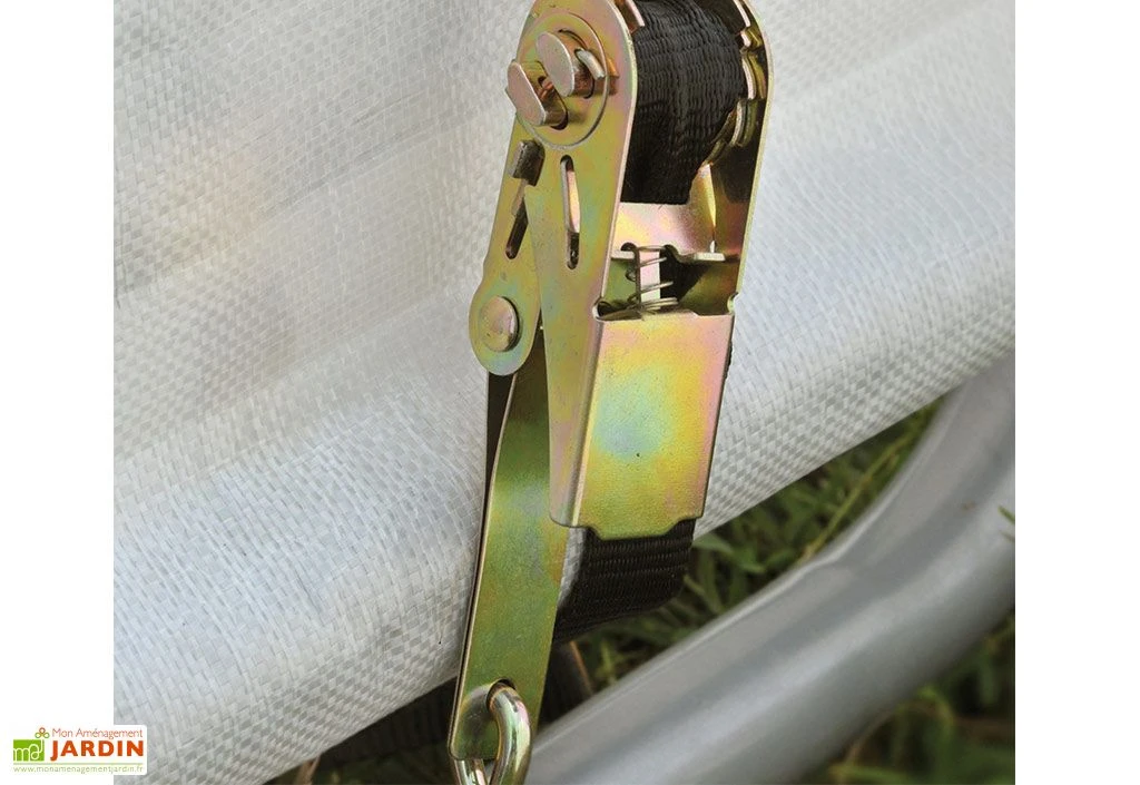 Pour une utilisation en toute sécurité, la serre de jardin est livrée avec des sangles d’arrimage qui lui permettent de résister au vent. Le montage et le démontage de la serre sont rapides et faciles. La garantie est de 2 ans.